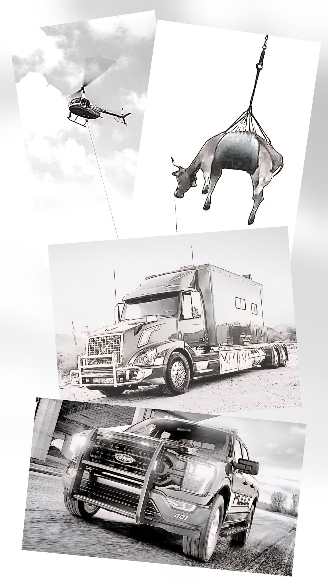 I’ll be darned, the next I see…the steer is rising into the air and Jack’s going up with it. The two got drawn up about twenty feet, partway to the chopper. The craft then made a one-eighty, went higher and disappeared over the hill.